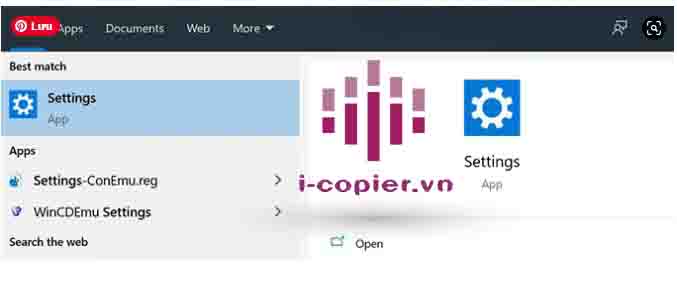 - Sử dụng tìm kiếm Cortana để tìm kiếm và mở Settings.