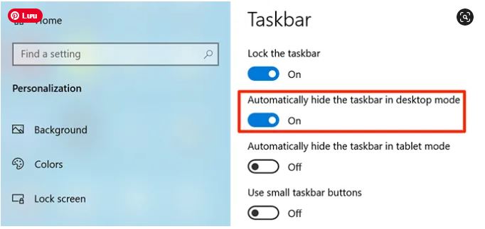 - Trên ngăn bên tay phải, bạn có nhiều tùy chọn khác nhau để định cấu hình thanh tác vụ. Một trong những tùy chọn này là Automatically hide the taskbar in desktop mode . Bật tùy chọn này ON và điều này sẽ ẩn thanh tác vụ trên màn hình của bạn.