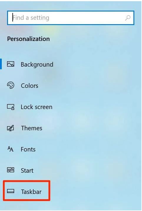 - Bạn sẽ tìm thấy một số tùy chọn trong thanh bên trái trên màn hình của mình. Nhấp vào thanh có ghi Thanh tác vụ Taskbar để mở cài đặt thanh tác vụ.