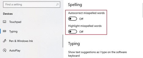 Chuyển Autocorrect misspelled words và Highlight misspelled words về trạng thái OFF.