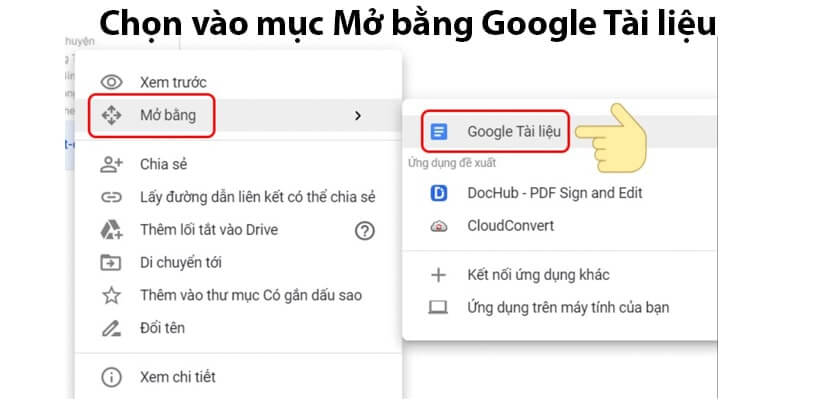- Bước 3: Tại Google Drive hãy nhấp chuột phải vào hình ảnh vừa tải lên và chọn vào mục Mở bằng Google Tài liệu.