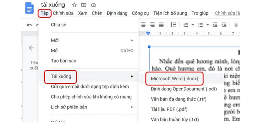Tại đây bạn có thể tuỳ ý chỉnh sửa nội dung theo nhu cầu và ấn chọn Tải xuống dưới dạng Microsoft Word (docx) ở mục Tệp để có thể tải file về máy.