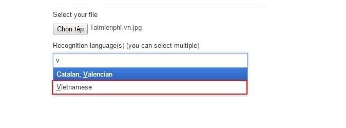 Bước 4: Tại mục Recognition languages các bạn chọn ngôn ngữ của tập tin ảnh muốn chuyển đổi. Ở đây file ảnh là ngôn ngữ tiếng Việt nên mình chọn Vietnamese.