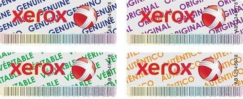 Hiện nay, trên thị trường tồn tại 2 loại tem chứng nhận hàng chính hãng Xerox là loại tem cũ và tem mới. Mực in Xerox chứa 1 trong 2 loại tem đều là hàng chính hiệu .