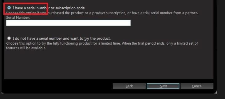 Bước 4: Tick chọn vào ô ” I have serial number or subscription code