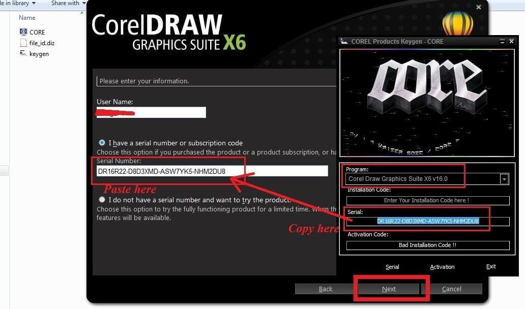 Bước 7: Copy serial number từ phần mềm keygen dán sang phần mềm. Sau đó nhấn Next