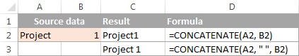 =CONCATENATE(“See”,A1,” ”,B1)