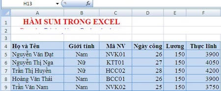 Ví dụ cụ thể sử dụng hàm sum trong excel