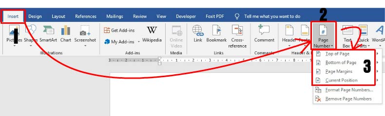 Bước 1: Click vào tab ribbon Insert chọn Page Number khi đó 1 danh sách đổ xuống bạn có các lựa chọn sau: