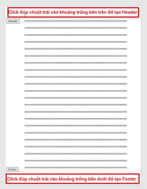 Cách 2: Tạo Header và Footer bằng cách click đúp chuột vào khoảng trống đầu hoặc cuối trang văn bản