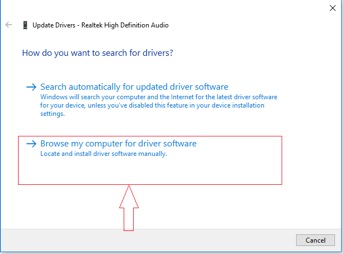 Nếu update driver tự động không thành công thì bạn có thể dùng 1 cách đó là update driver thủ công, làm các bước y như trên nhưng người dùng sẽ chọn vào mục Browse my computer for driver software.