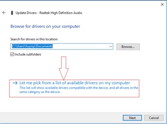 Tiếp đó chọn vào mục Let me pick from a list of device drivers on my computer rồi chọn tiếp vào Next.