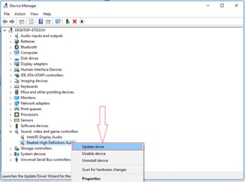Bạn nhấp đúp chuột vào mục Sound, video and game controllers mục driver âm thanh sẽ xuất hiện, nhấp chuột phải vào driver, chọn update driver software.