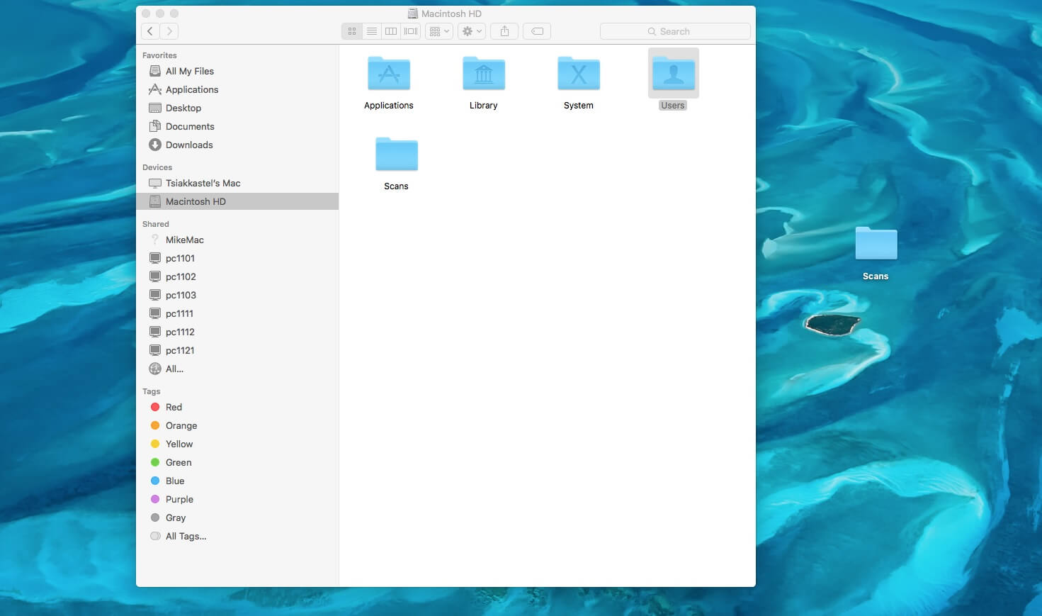 - Trên máy Mac, vào ổ Macintosh HD, tạo một thư mục tên ví dụ là Scanner, rồi kéo ra Desktop để dễ truy cập.