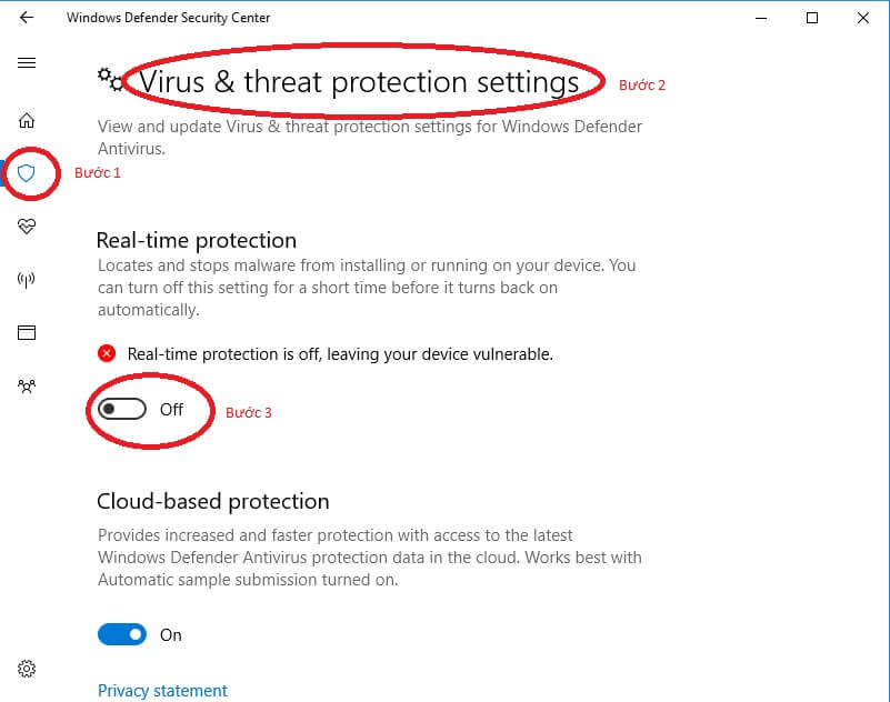 Nếu các bạn chỉ muốn tắt Windows Defender tạm thời thì thực hiện theo các bước dưới đây: