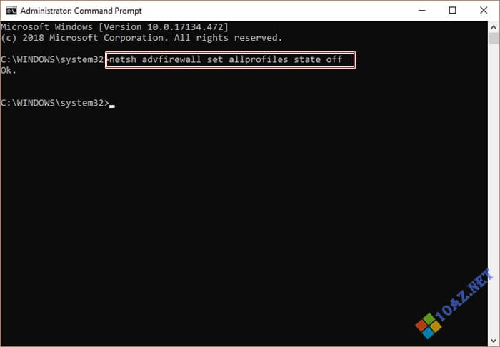Cách tắt Firewall Win 10 bằng Command Prompt