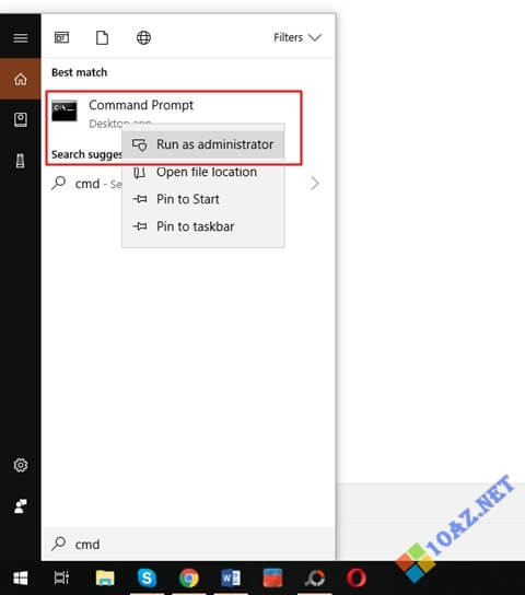 Bước 1: Bạn bấm phím Windows, sau đó nhập cmd vào ô tìm kiếm. Khi chương trình Command Prompt hiện ra, bạn click chuột phải rồi chọn Run as administrator để chạy bằng quyền admin.
