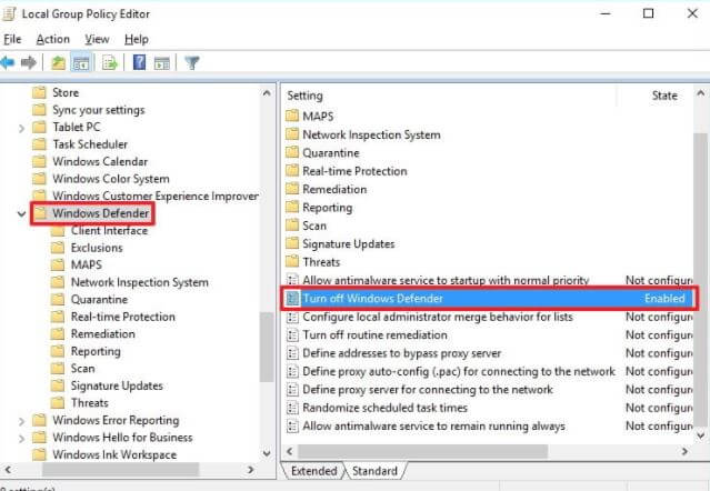 Cách 1. Vô hiệu hóa Windows Defender bằng Local Group Policy