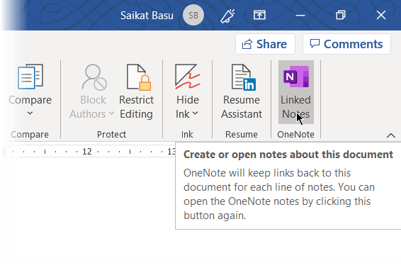 Tính năng OneNote Linked Notes cho phép bạn gắn OneNote vào một phần tài liệu Word đang mở và để lại ghi chú. Bất cứ ghi chú nào bạn thực hiện trong OneNote đều được liên kết tới file Word liên quan. Để sử dụng Linked Notes trong Word, tới Ribbon > Review > Linked Notes.