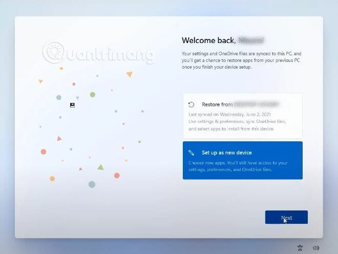 Bước 13: Bước này dành cho những ai đăng nhập tài khoản Microsoft cũ. Bạn sẽ chọn muốn khôi phục dữ liệu từ máy tính cũ hay muốn thiết lập mới hoàn toàn. Hãy chọn lựa tùy theo nhu cầu của mình.
