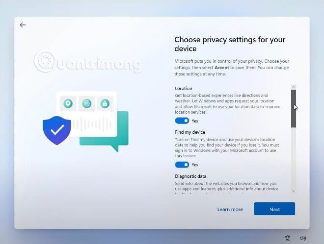 Bước 14: Chọn thiết lập quyền riêng tư cho laptop hay PC