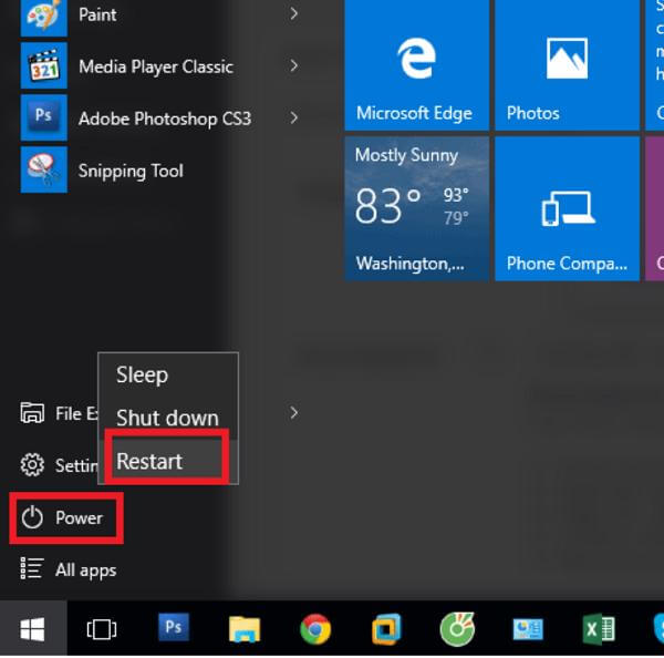 Vào Start -> sau đó chọn Power -> Nhấn và giữ tổ hợp phím Shift + Restart.