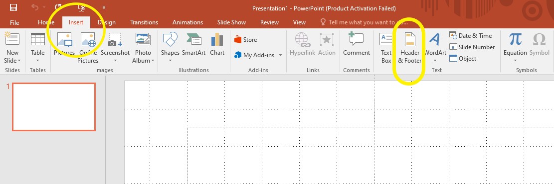 Tại tab Insert, chọn vào Header & Footer.