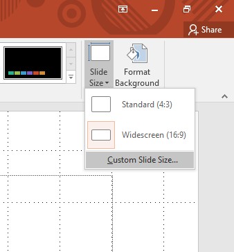Tại tab Design, chọn vào Slide size, nhấn chọn tiếp Custom Slide Size.