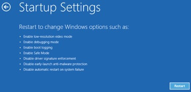 Nhấp vào Startup Settings > Restart