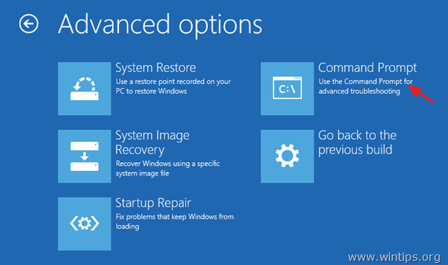 Chọn Troubleshoot => Advanced Options => Command Prompt.