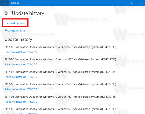 Trên trang tiếp theo, nhấp vào liên kết Uninstall updates