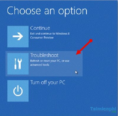 Máy tính sẽ khởi động ở chế độ Advanced Startup , bấm Troubleshoot