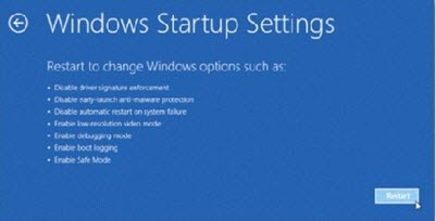 1. Boot vào Advanced Startup Options.