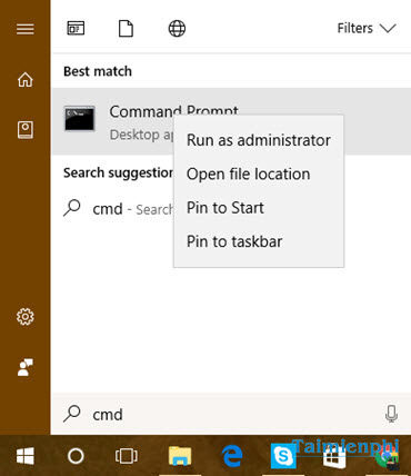 Trong chế độ SafeMode , bấm Start , gõ CMD, bấm chuột phải vào dòng Command Prompt chọn Run as Administrator để khởi động Command Prompt ở chế độ Admin