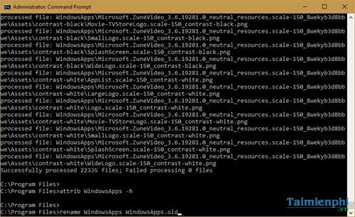icacls WindowsApps /grant “%USERDOMAIN%\%USERNAME%”:(F) /t