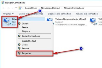 Bước 3: Trong cửa sổ hiện ra nhấn chuột phải vào biểu tượng kết nối mạng mà bạn đang sử dụng và chọn Properties.