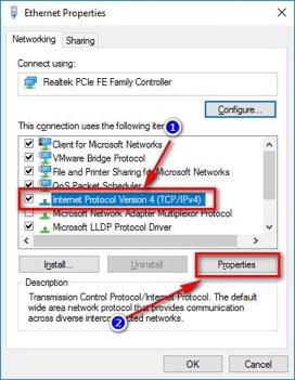 Bước 4: Cửa sổ Properties hiện ra, bạn tìm và chọn tùy chọn Internet Protocol Version 4 (TCP/IPv4) rồi nhấn vào nút Properties.