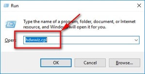 Bước 2: Ở cửa sổ hiện ra, bạn nhập câu lệnh hdwwiz.cpl và nhấn Enter.