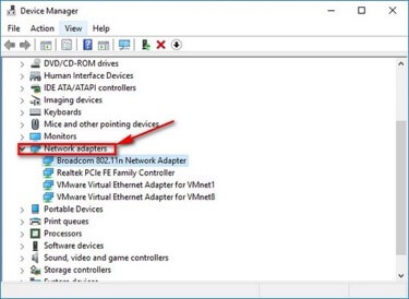 Bước 3: Cửa sổ Device Manager hiện ra nhấn vào tùy chọn Network adapters để xem các driver mạng.