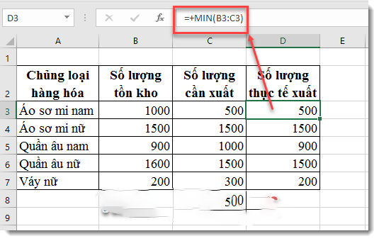 Vậy số lượng hàng xuất được sẽ được xác định bằng giá trị nhỏ nhất giữa số tồn và số lượng cần xuất.