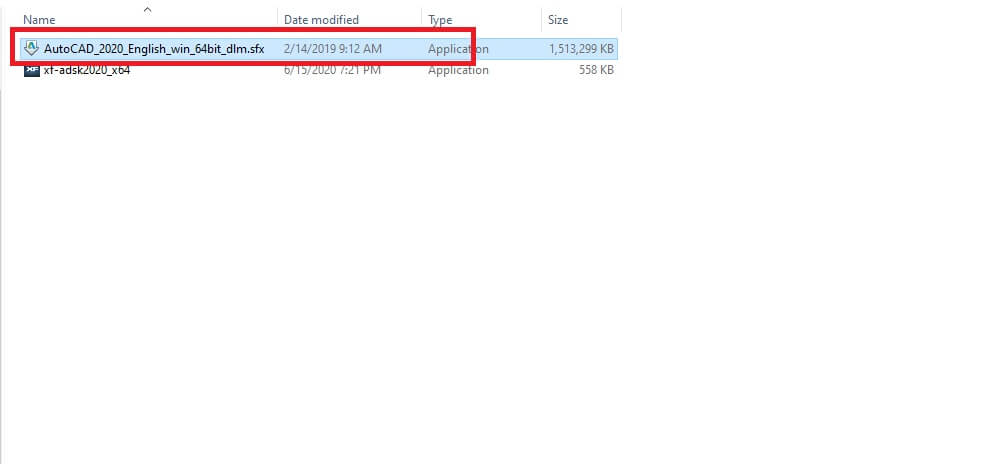 Bước 1: Sau khi tải phầm mềm Autocad 2021 full crack về bạn tiến hành giải nén và chạy file “AutoCAD_2021_English_win_64bit_dlm.sfx.exe” như hình bên dưới: