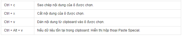 3. Các phím tắt trong Excel giúp chèn và chỉnh sửa dữ liệu